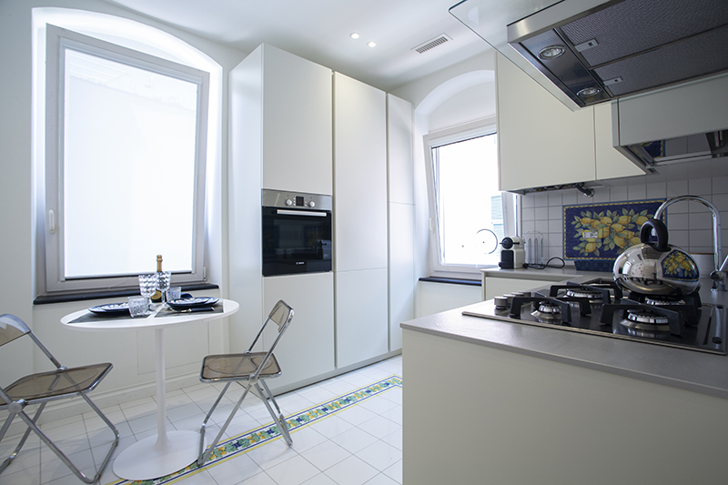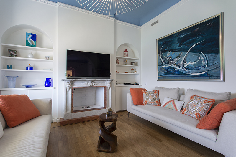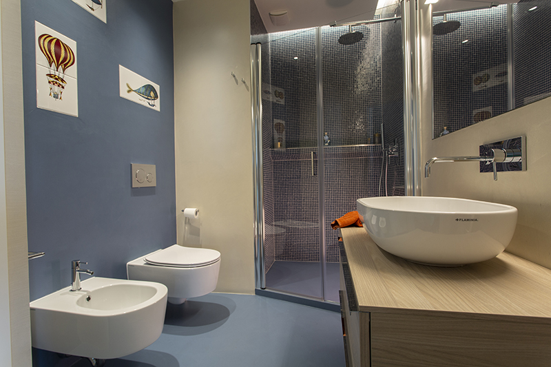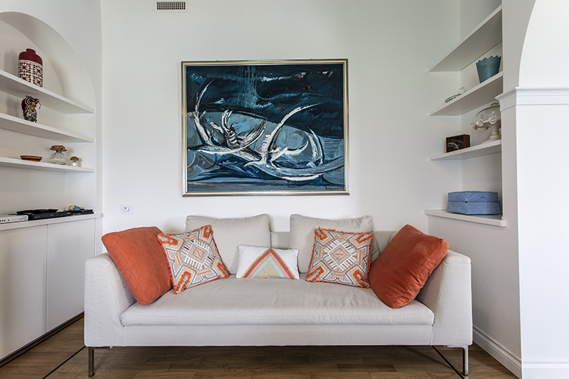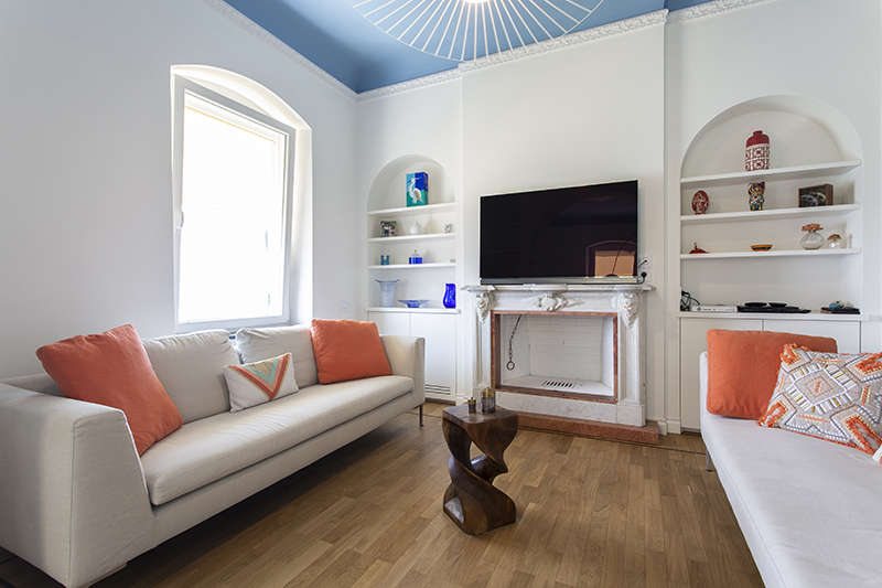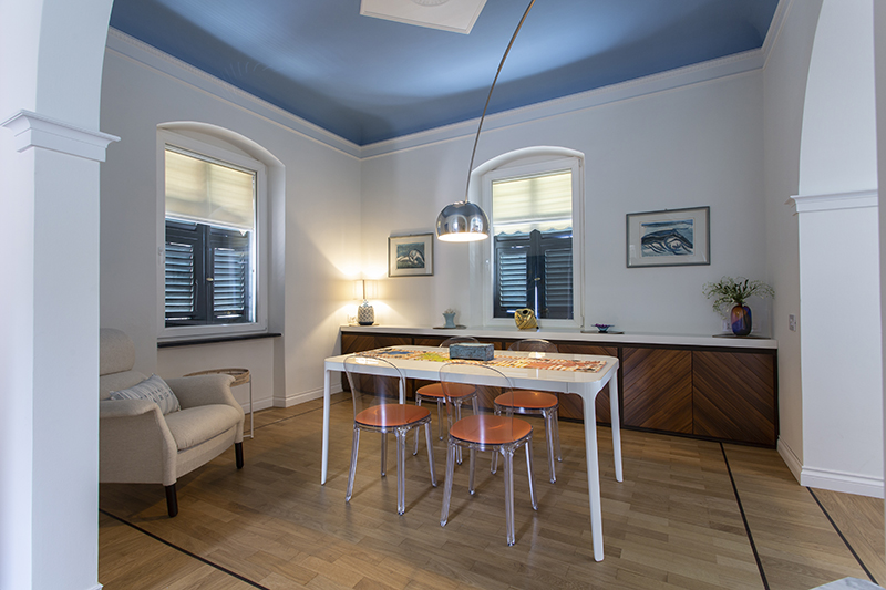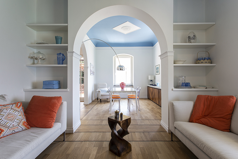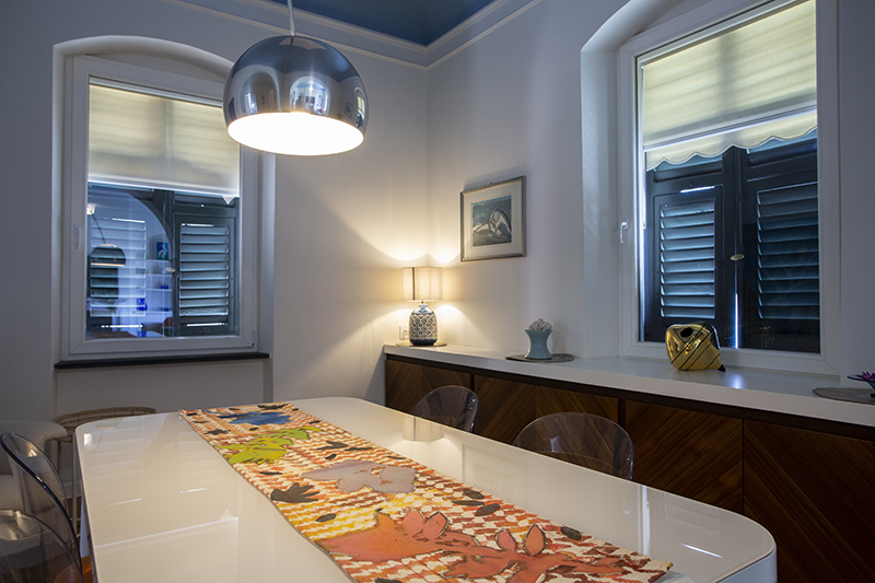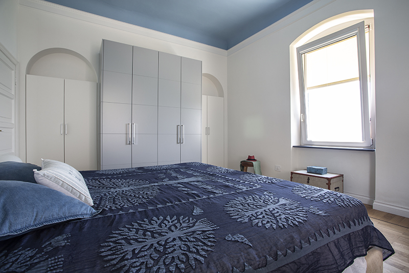The story behind this job is as special as the relationship between the owners and their beautiful home: love at first sight during a random visit to Lerici. The apartment is located at the top floor of an early twentieth century building; the flat and its wide terrace provide a breathtaking view that include on the whole Golfo dei Poeti and Portovenere. We access the flat through the big terrace-garden where an outdoor shower hidden under a tree and a wooden alcoved straucture where the owners love to spend summer nights togerther with their friends. The apartment, with free sight on all sides, is invaded by light and it is composed of a double living area that welcomes the guest as soon as he enters: the transitional dining area and the livingroom more reserved and intimate. Two bedrooms, two bathrooms and the kitchen complete the flat. All the living area and the master bedroom overlook Lerici's sea shore: a sequence of panoramic views impress the guest that might lean over. The interior design intervention has been conservative in order to give value and restore the original features of the property, updating its language with new materials and contemporary solutions. Keeping good contact with the owners has allowed us to make the most of all spaces through made to measure furniture pieces and wardrobes. The two bathrooms are characterized by the alternation of resin and gres porcellanato and mosaic: in the bathroom with shower as in the kitchen we inserted in the wall depth some 20x20 tiles, decorated with flying cars designed by Piero Fornasetti. The flooring of the living area and bedrooms have a traditional parquet, which have been recovered, while in the bathrooms we preferred realizing an eco-resin carpet. The sea and its colors are at the center of the whole project as a constant presence that measure the space of the home and the view that it is surrounded by.Photographer: Daniele Bianchi