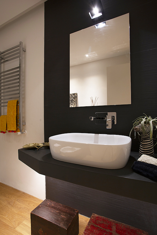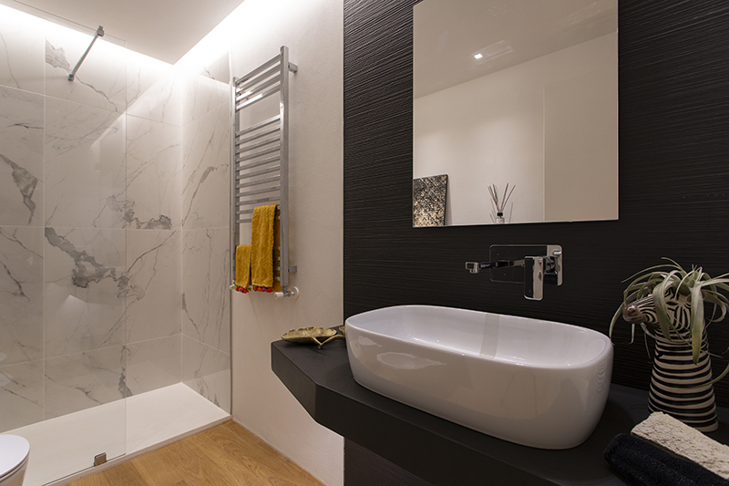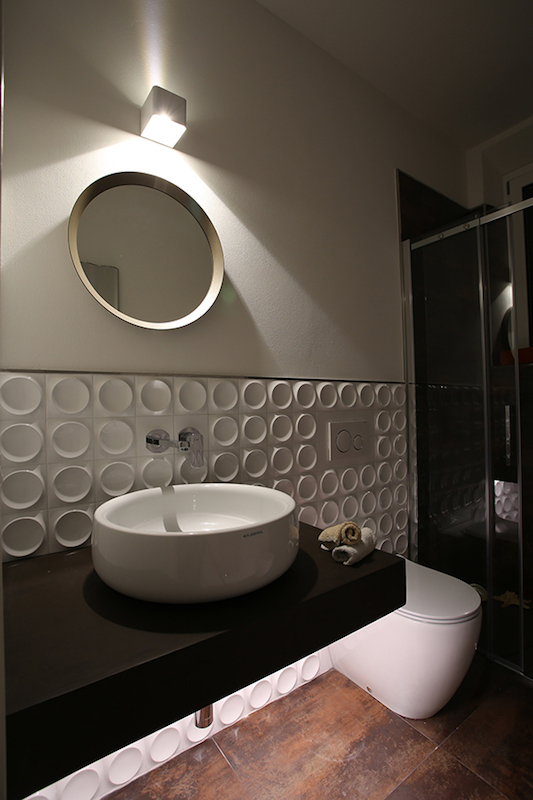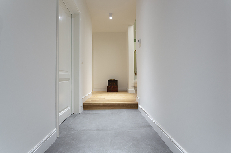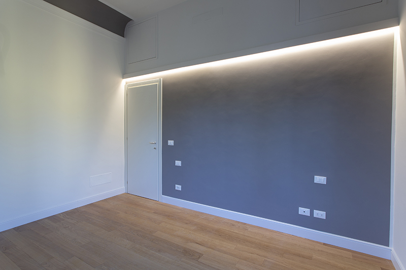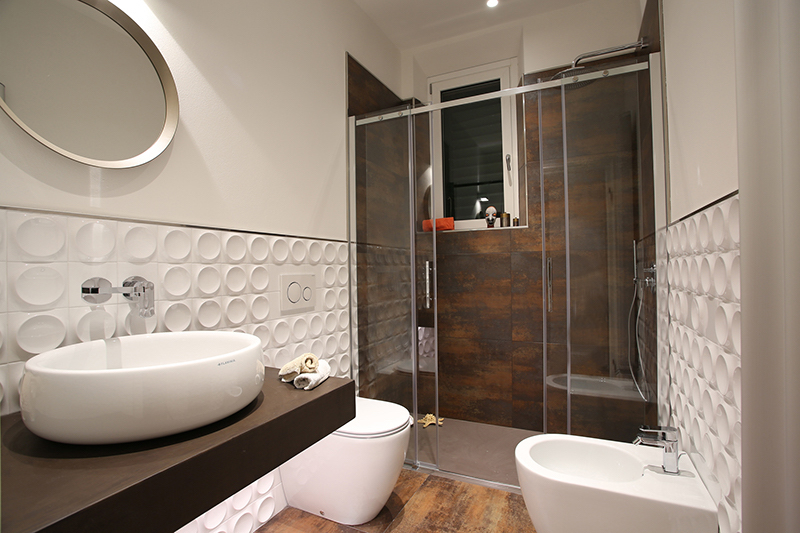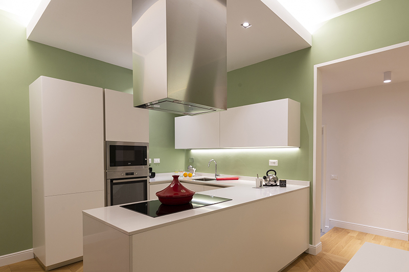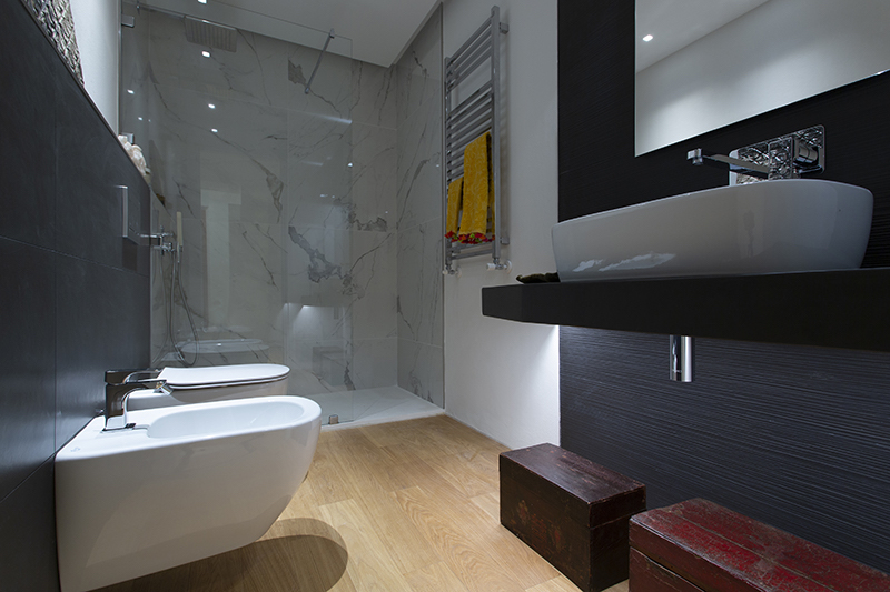 This airy and bright appartement is inhabited by a young couple and their little daughter. The idea behind the project started with the desire to reinterpret in current key the original planimetrical distribution of the house according with the specific needs of the new owners without distorting and deleting the typical features of the building of the early florentine twentieth century: we wanted to match chromatic and decorative choices of the construction period to modern solutions, both in the choice of some finishes and in the fournishing . The house consists of a large living area with an open kitchen, intended as the virtual center of the house and the heart of domestic life, three large rooms served by a bathroom, while entering the service area we find a guest bathroom, a storage and a loudry room. The kitchen is illuminated by a large glass door that overlooks a very special quarter-shaped terrace.From all the windows you can enjoy the view of the first Florentine hills and the nature that surrounds the house is re-proposed internally in the wall colors of the living area and in the choice of paving the whole house in oak parquet laid with a Hungarian plug or in running planks . The bathrooms stand out in finishes and in the choice of colors: the master one in shades of gray and black with a spectacular shower enclosure covered with large slabs of calacatta marble effect, while the one serving the living area characterized by white and rusty iron porcelain stoneware tiles on the floor and in the shower box. The careful lighting design creates different solutions for the rooms in the home. The harmony and the fruitful dialogue with the landlady have allowed us to deliver a renovated house, without denying the past but with a look to the future.Photographer: Daniele Bianchi