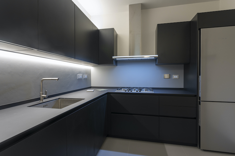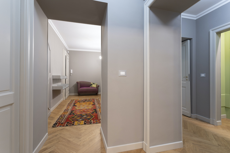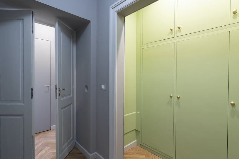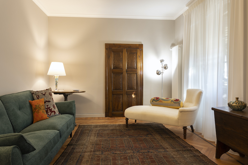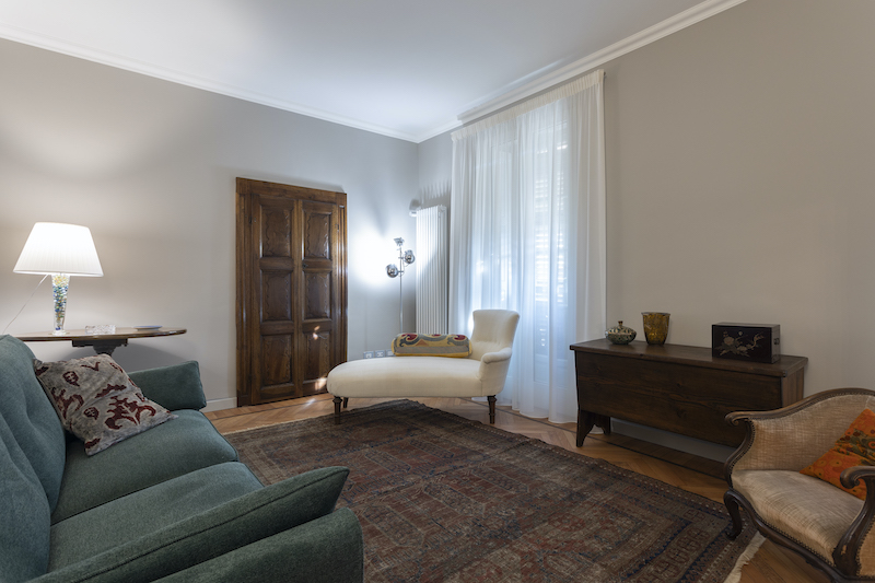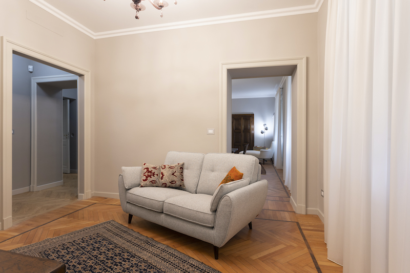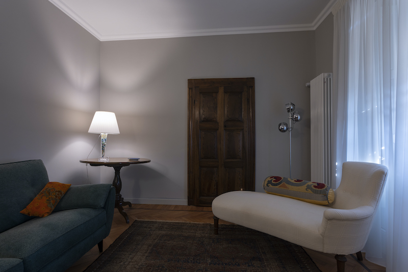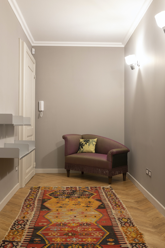 L’appartamento oggetto di intervento è posto all’ultimo piano di un immobile storico sottoposto a vincolo diretto della Sovrintendenza. Prima del nostro intervento di recupero, l’unità immobiliare versa in pessime condizioni di manutenzione sia dal punto di vista impiantistico che delle finiture. L’ipotesi progettuale ha assecondato i limiti stringenti imposti dal vincolo di tutela, volti a salvaguardare gli elementi architettonici originari, e su di essi si è incardinato il nostro intervento mediante l’attento restauro di tutti i serramenti esterni ed interni oltre al recupero delle pavimentazioni in parquet. La completa riqualificazione impiantistica ed energetica ha permesso, grazie alla consulenza di professionisti specializzati, di poter beneficiare delle recentissime agevolazioni fiscali del Superbonus 110%. La committenza desiderava preservare i caratteri tipici delle residenze torinesi e proprio da queste volontà siamo partiti con un intervento conservativo che attraverso puntuali innesti e minime modifiche ha permesso di soddisfare le mutate esigenze dalla nova proprietà. La distribuzione planimetrica permette di separare la zona giorno – composta da cucina, soggiorno e sala da pranzo – dalla zona notte caratterizzata da un’ampia camera da letto con bagno “en suite” e cabina armadi – oltre ad un bagno per gli ospiti e una zona di servizio. Le vecchie pavimentazioni, prive di valore e compromesse da precedenti interventi, sono state sostituite con un nuovo pavimento in parquet montato a spina italiana senza l’inserimento di fascia e bindello perimetrali, ma riletto in chiave moderna come elemento di continuità materica. Il nuovo bagno è stato realizzato con un tappeto uniforme di resina che, intervallata da una boiserie in lastre di gres porcellanato di grande formato, continua a tutta altezza colorando anche il soffitto di un blu profondo.Fotografo: Daniele Bianchi